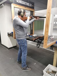 Am 23. September waren einige Mitglieder des FCZ Fanclubs 1896 zum ersten Mal in einem Schiessstand. Dank einer professionellen Einführung und Betreuung konnten bald alle mit einem Gewehr oder einer Pistole die ersten Schüsse abgeben. Die Schiesstafeln, welche ca. 25m weiter hinten aufgehängt waren, wiesen allesamt nach kurzer Zeit schon ziemlich viele Löcher auf... Nach rund 2h hing der Pulverdampf auch recht tief und es wurde doch etliche Munition verschossen. Es war ein eher teurer Event, doch er machte sichtlich Spass, war abwechslungs- und auch lehrreich. Das anschliessende Mittagessen in Wesen rundete den doch sehr gelungenen Anlass an diesem Samstagmorgen ab.